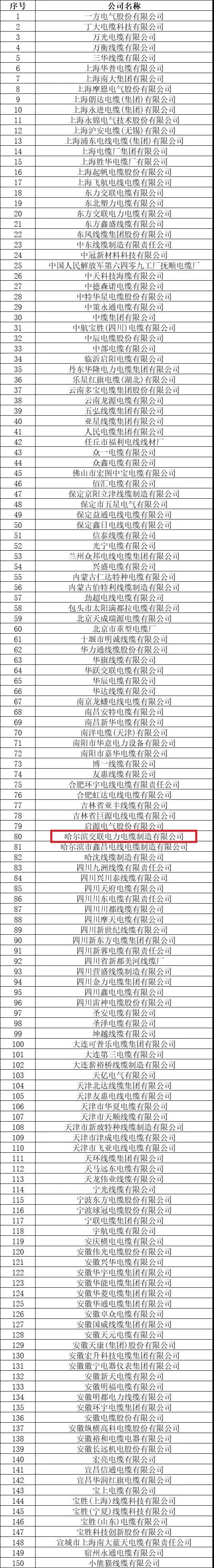公司名称:哈尔滨交联电力电缆制造有限公司