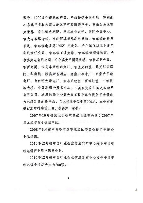 公司名称:哈尔滨交联电力电缆制造有限公司