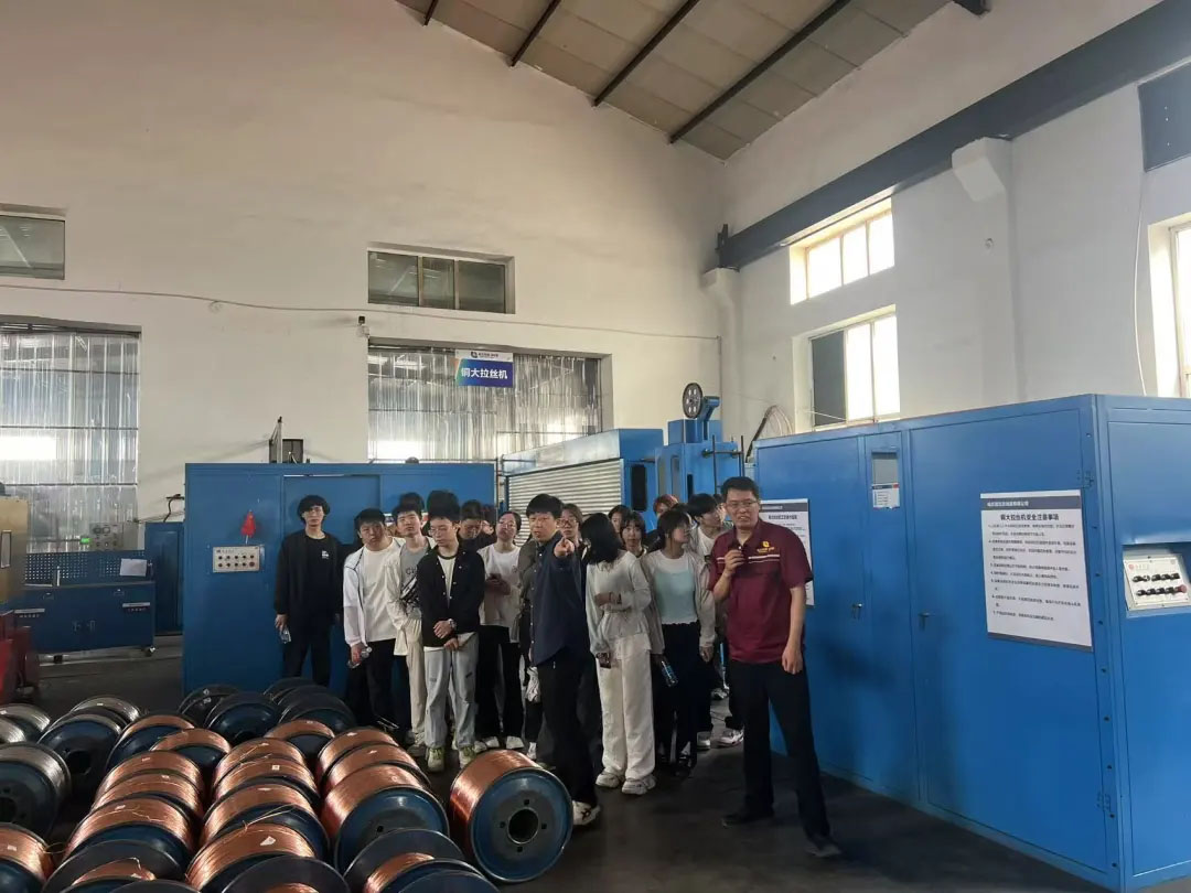 参观队伍深入智能化生产车间与产品展区、质检中心等。技术人员现场演示了从原材料到成品检测的全流程操作,并结合实际案例,向学生们讲解了理论知识在生产实践中的应用,深刻体会到 “品质铸就品牌” 的企业理念。